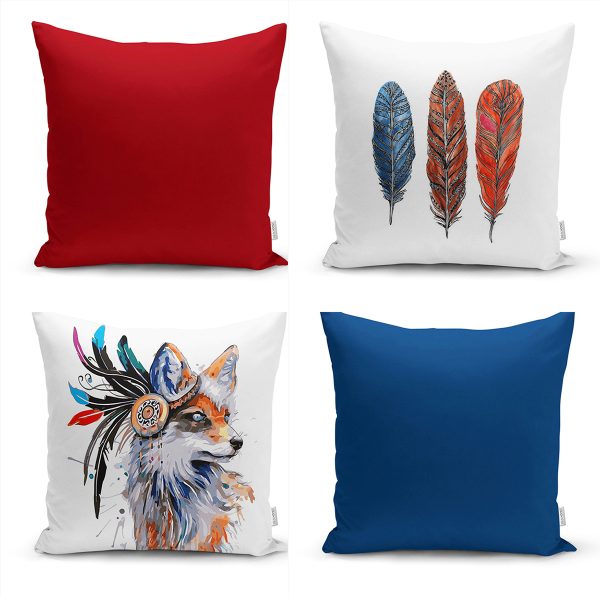 Realhomes Modern Renkli Tüy Motifli Dekoratif 4’lü Kırlent Yastık Kılıfı