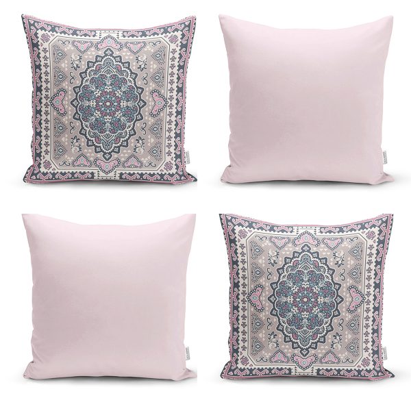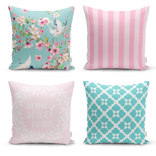 Realhomes Pembe ve Mint Yeşili Konseptli Dekoratif 4’lü Yastık Kırlent Kılıfı