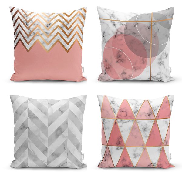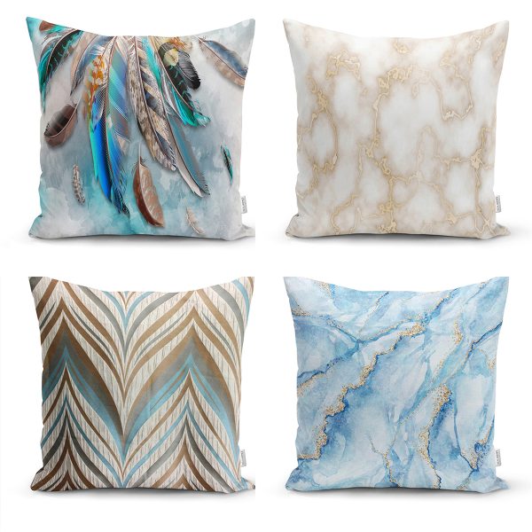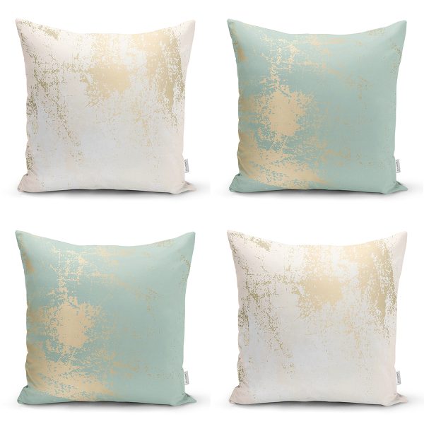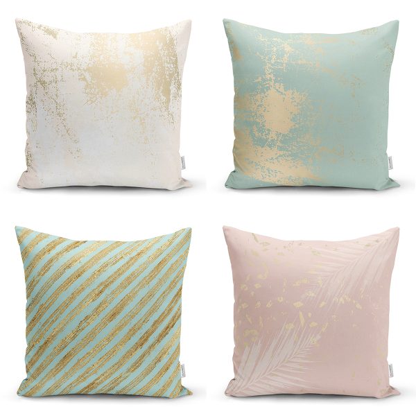 4’lü Renkli Zemin Üzerinde Gold Detaylı Mermer Desenli Modern Yastık Kırlent Kılıf Seti