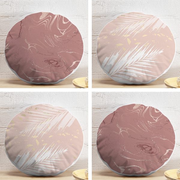 4’lü Tüy Ve Yaprak Tasarımlı Modern Dekoratif Dijital Baskılı Yuvarlak Yastık Kırlent Kılıf Seti