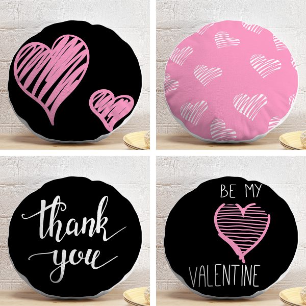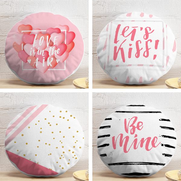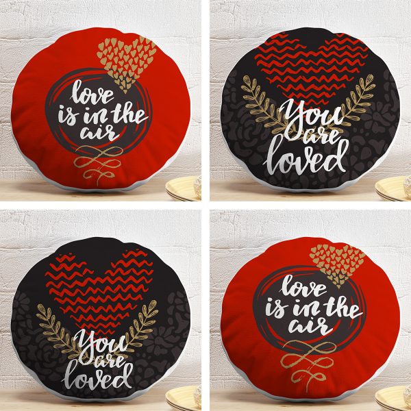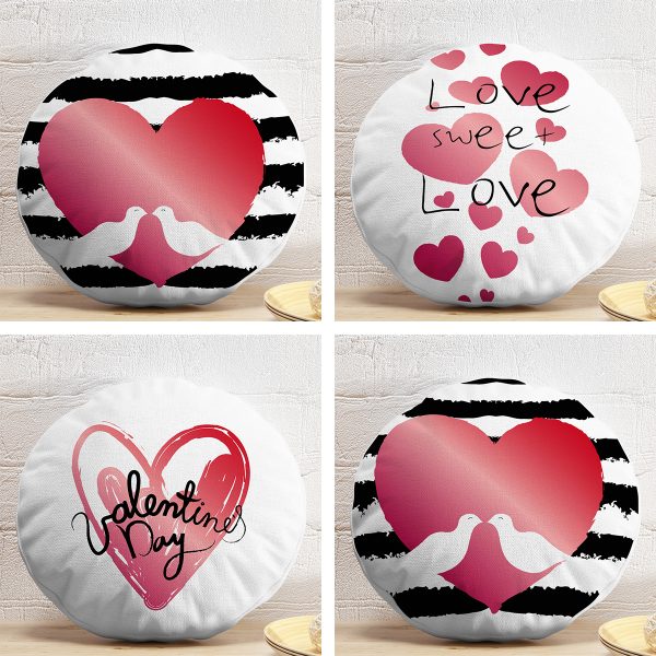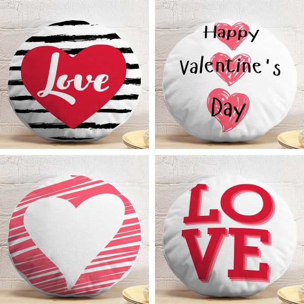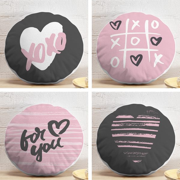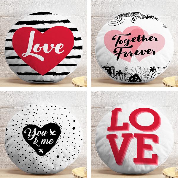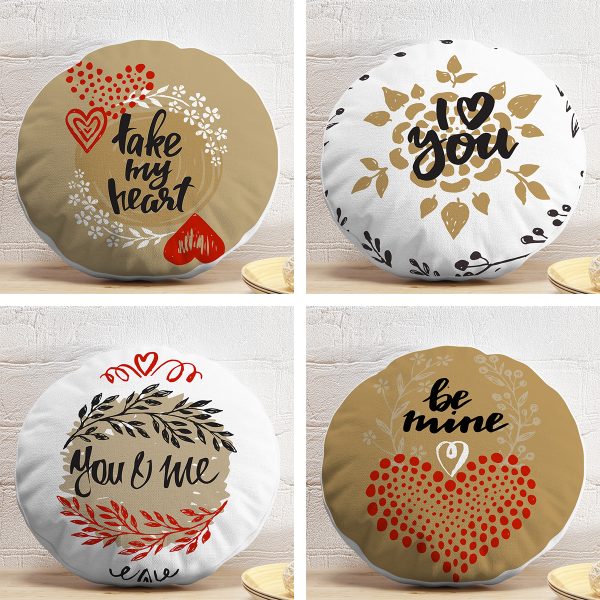 4’lü Sevgililer Günü Konseptli Özel Tasarım Modern Kombin Yuvarlak Yastık Kırlent Kılıf Seti