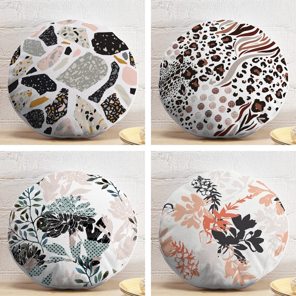 4’lü Geometrik Ve Leopar Desen Tasarımlı Modern Dijital Baskılı Yuvarlak Yastık Kırlent Kılıf Seti
