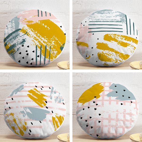 4’lü Sarı Ve Pembe Sulu Boya Fırça Darbeli Dekoratif Yuvarlak Yastık Kırlent Kılıf Seti