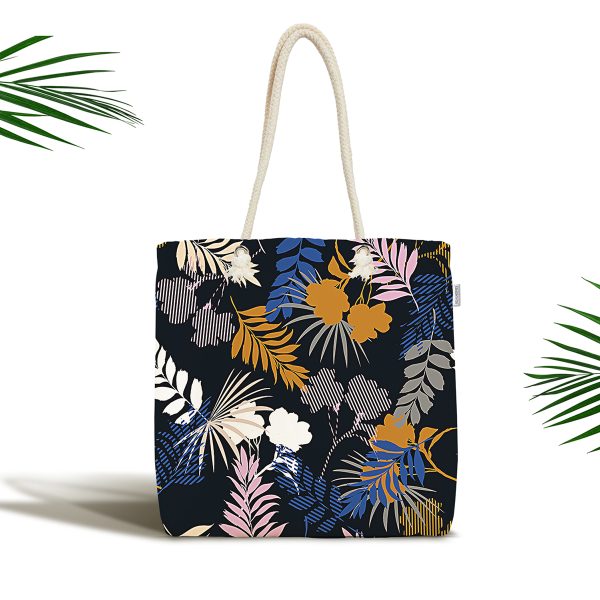 Yaprak Desenli Dijital Baskılı Kumaş Plaj Çantası