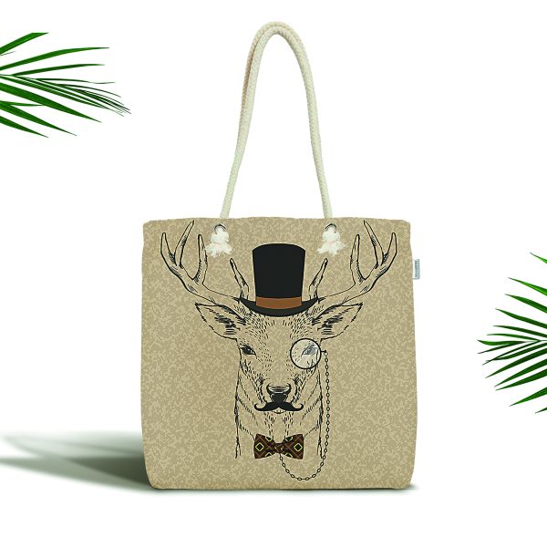 Geyik Desenli Dijital Baskılı Kumaş Plaj Çantası