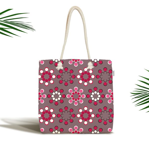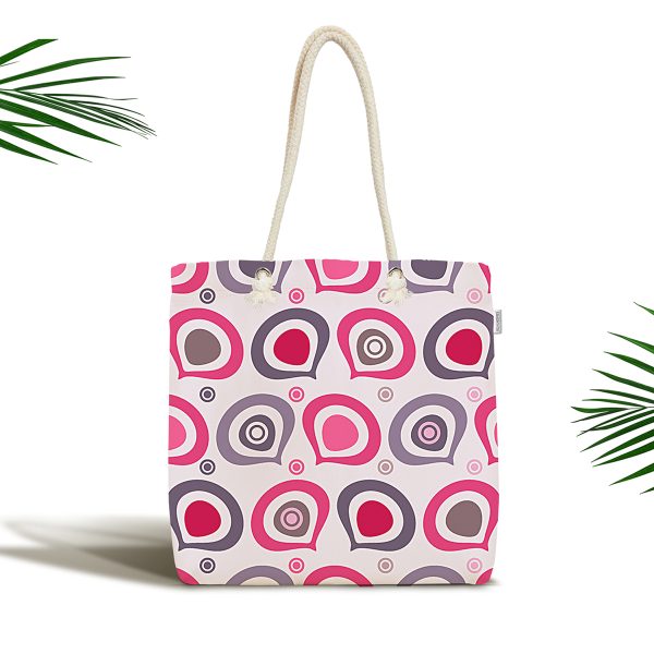 Dairesel Desenli Dijital Baskılı Kumaş Plaj Çantası