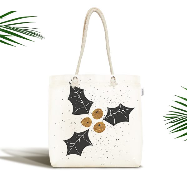 Renkli Zeminde Onedraw Çizimli Yılbaşı Temalı Dijital Baskılı Kumaş Plaj Çantası