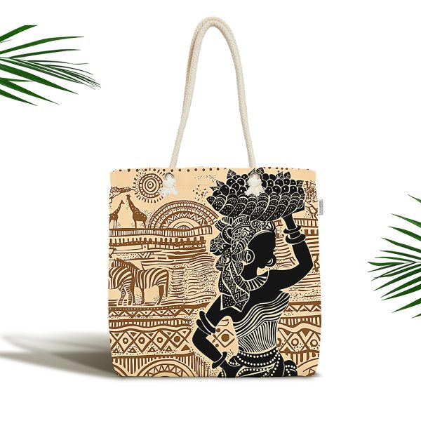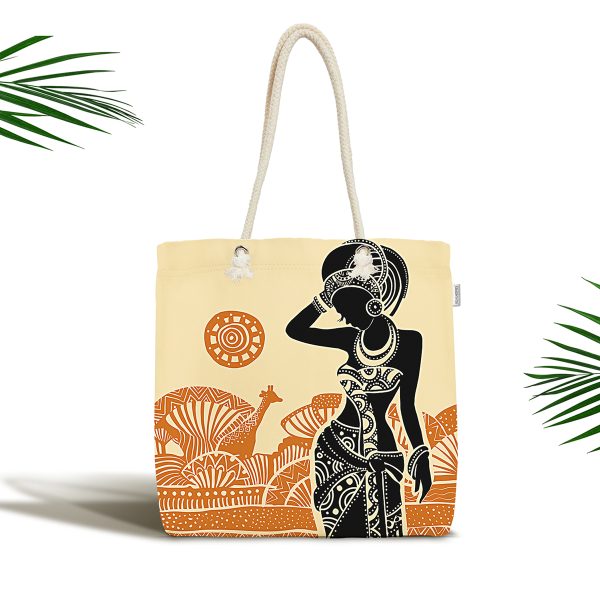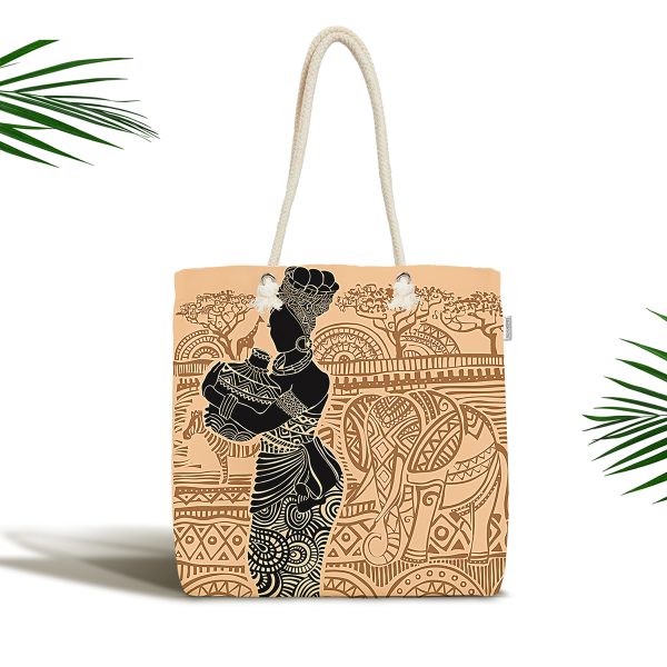Etnik Desen Zeminli Afrika Kadın Motifli Kumaş Plaj Çantası