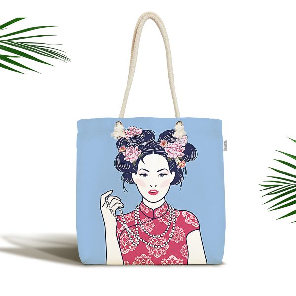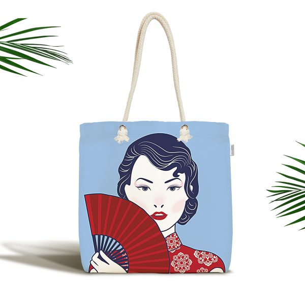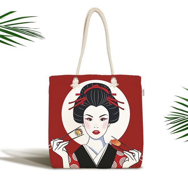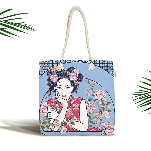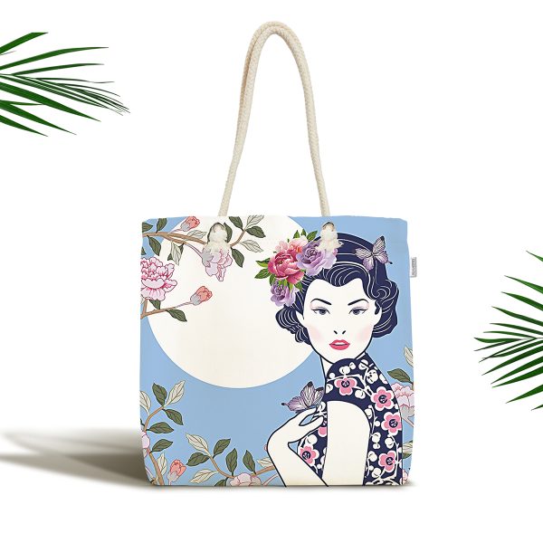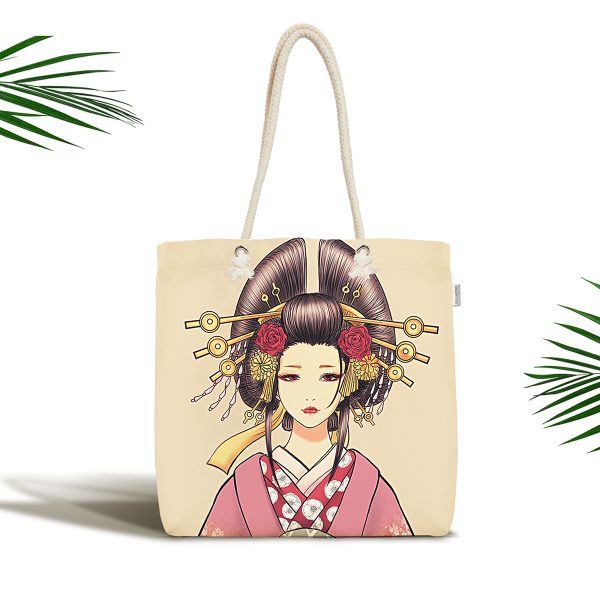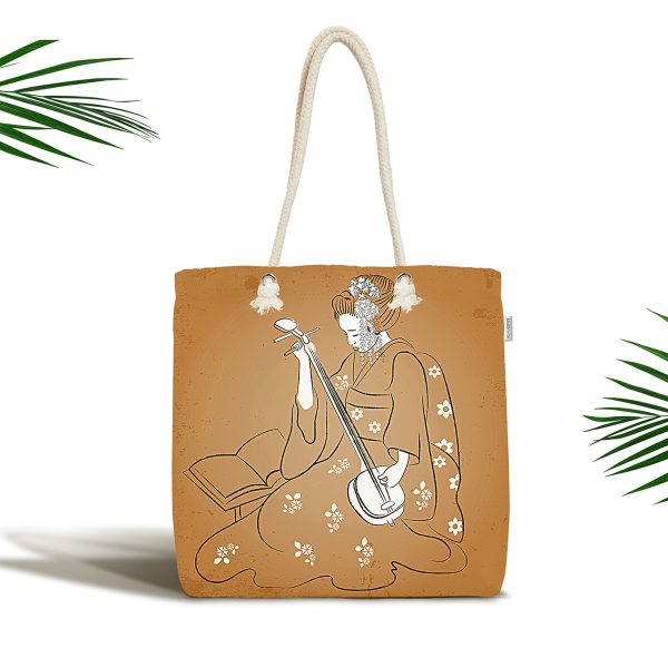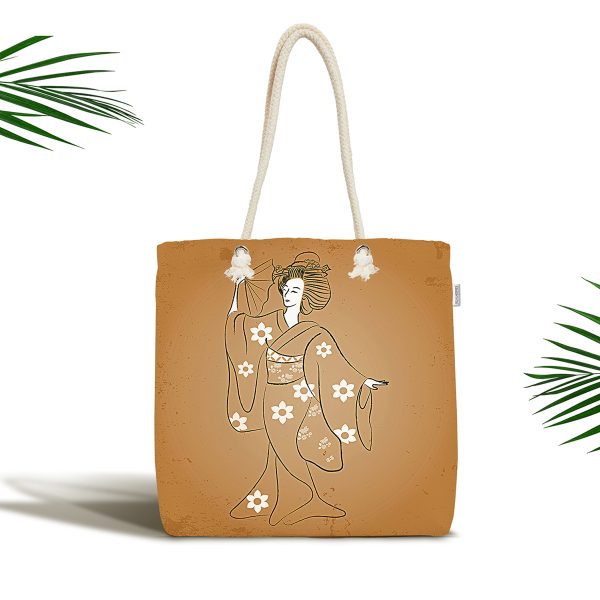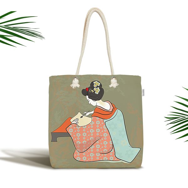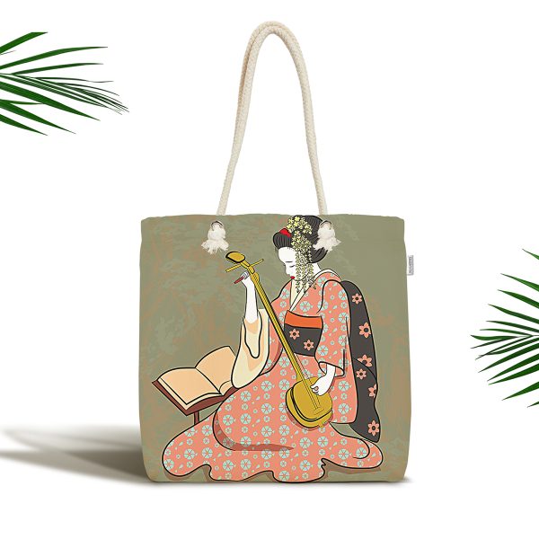 Masum Baskan Japon Kız Motifli Modern Kumaş Plaj Çantası
