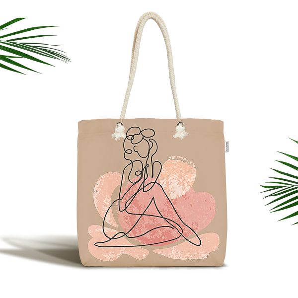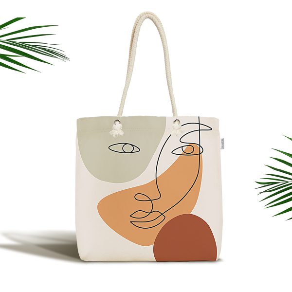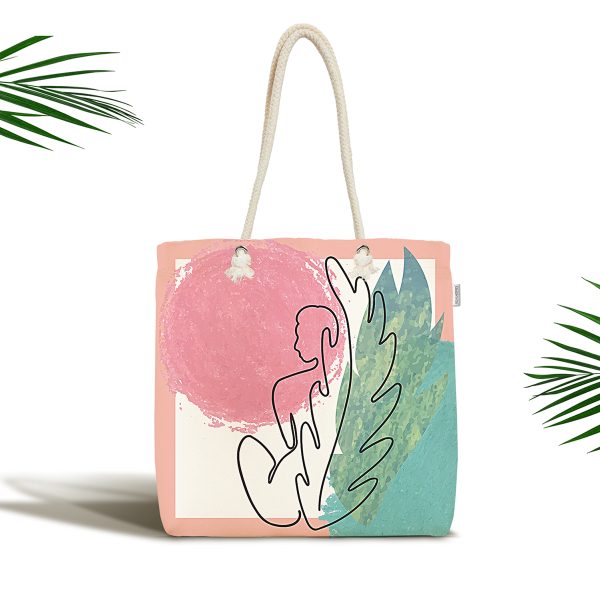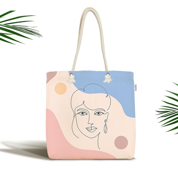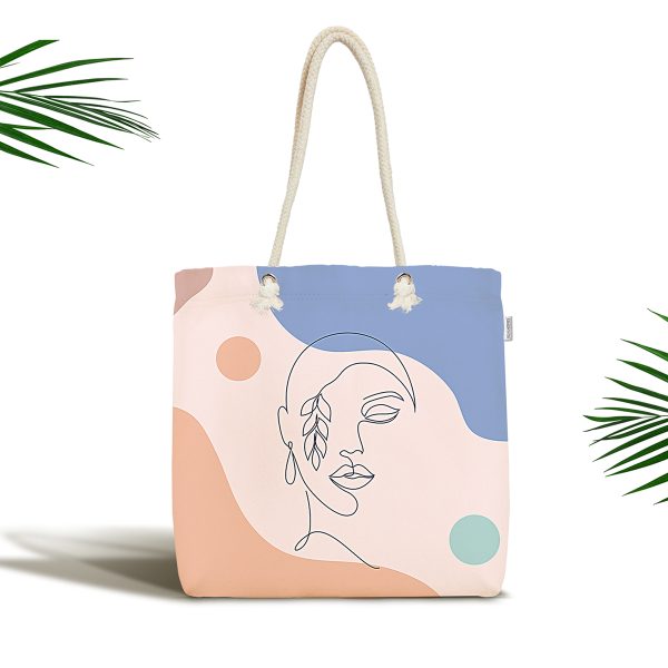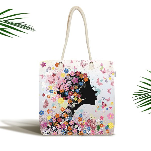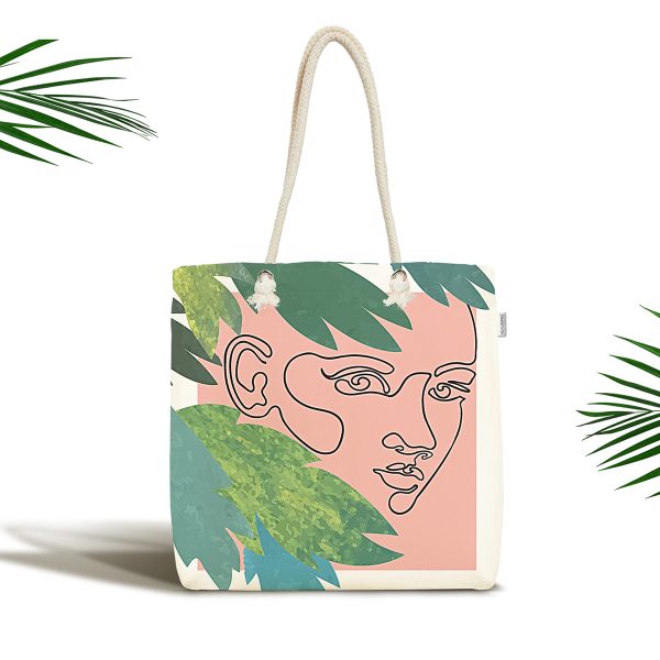 Çiçek Detaylı Modern Kadın Motifli Kumaş Plaj Çantası