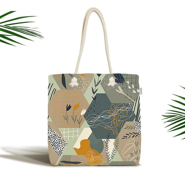 Geometrik Şekilli Bohemian Özel Tasarımlı Modern Kumaş Plaj Çantası