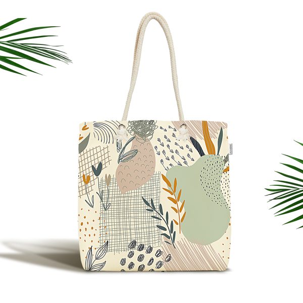 Realhomes Soyut Tarazda Pastel Renkli Dijital Baskılı Özel Renkli Kumaş Plaj Çantası