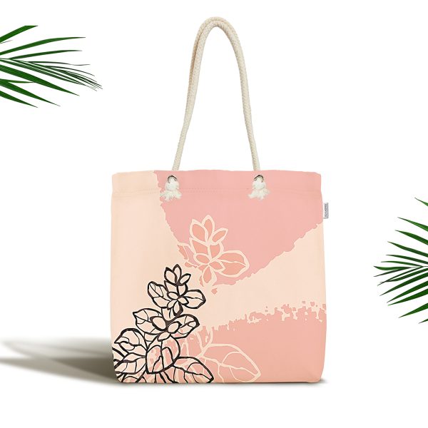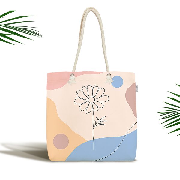 Soyut Tarzda Pastel Çiçek Figürlü Dijital Baskılı Kumaş Plaj Çantası
