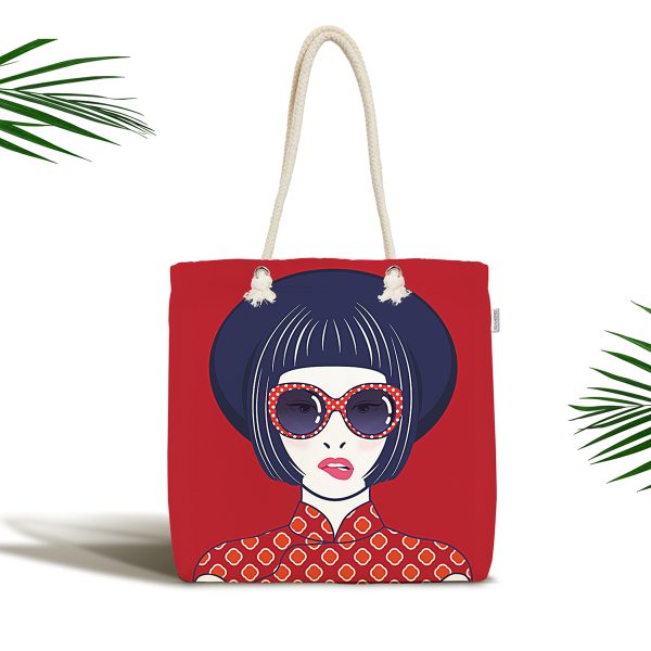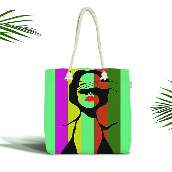 Popart İllüstrasyon Kadın Figürlü Dijital Baskılı Özel Tasarım Kumaş Plaj Çantası