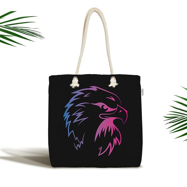 Siyah Zeminde Neon Kartal Motifli Kumaş Plaj Çantası