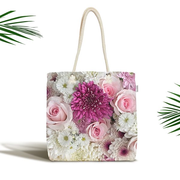 Çiçek Demeti Dijital Baskılı Kumaş Plaj Çantası