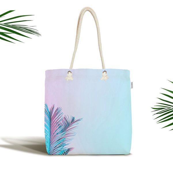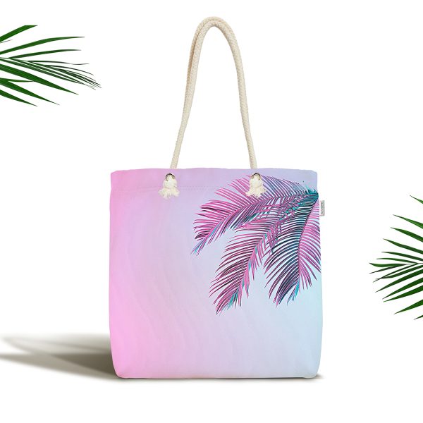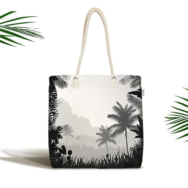 Doğa Temalı Palmiye Ağaç Desenli Kumaş Plaj Çantası
