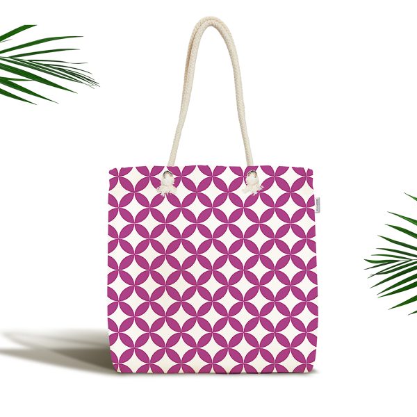 Mor Dairesel Geometrik Dijital Baskılı Kumaş Plaj Çantası