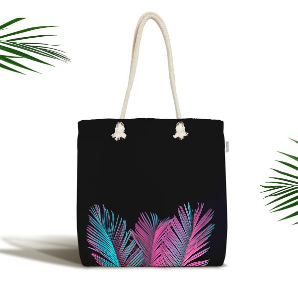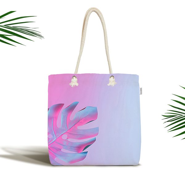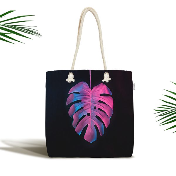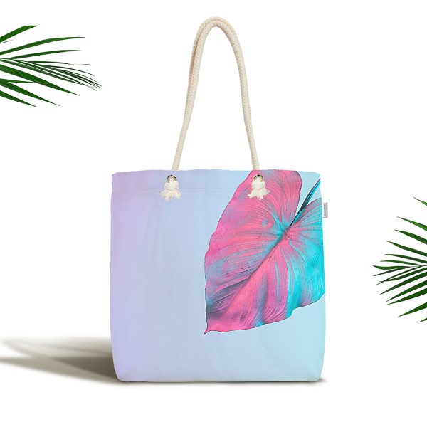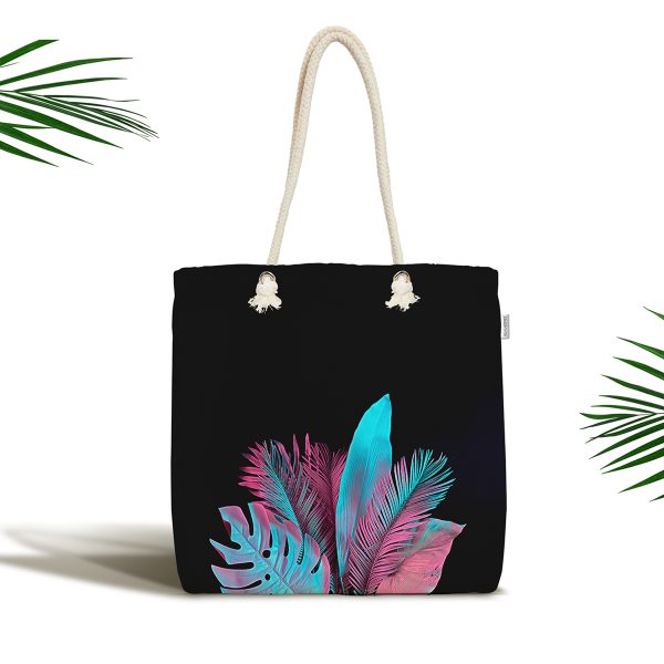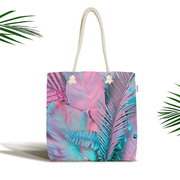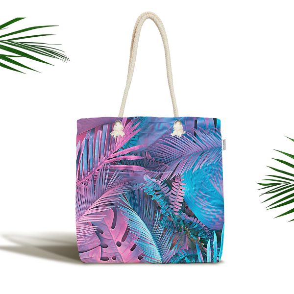 Tropik Yapraklı Özel Tasarım Dijital Baskılı Modern Kumaş Plaj Çantası