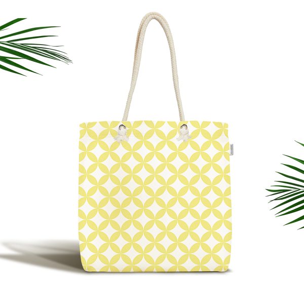 Sarı Dairesel Geometrik Dijital Baskılı Kumaş Plaj Çantası