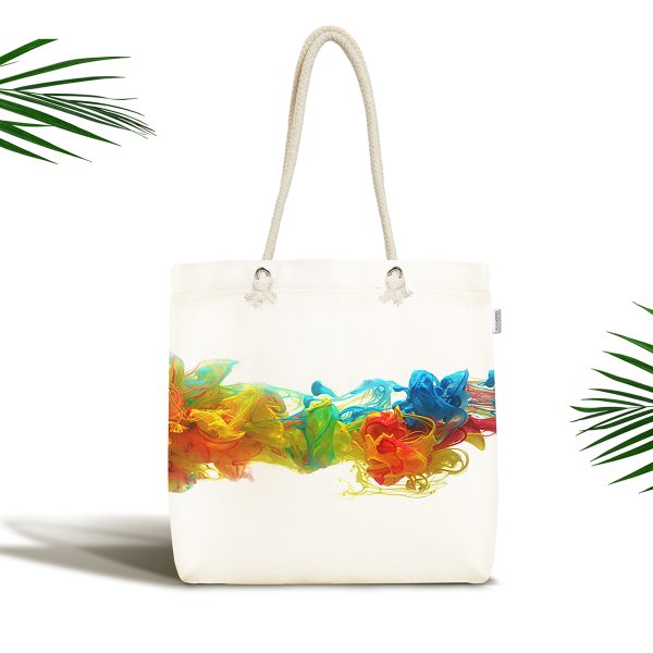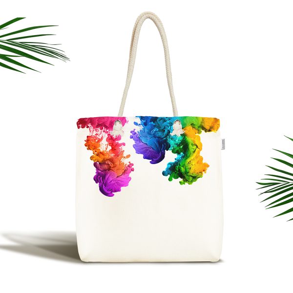 Renkli Duman Dijital Baskılı Kumaş Plaj Çantası