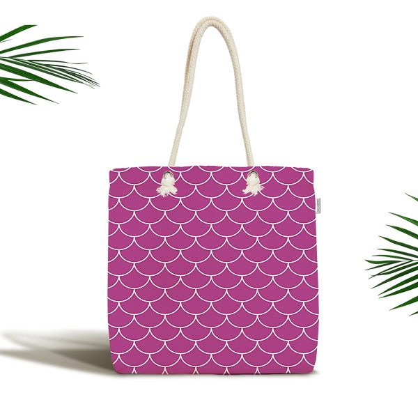 Mor Geometrik Pul Desenli Dijital Baskılı Kumaş Plaj Çantası