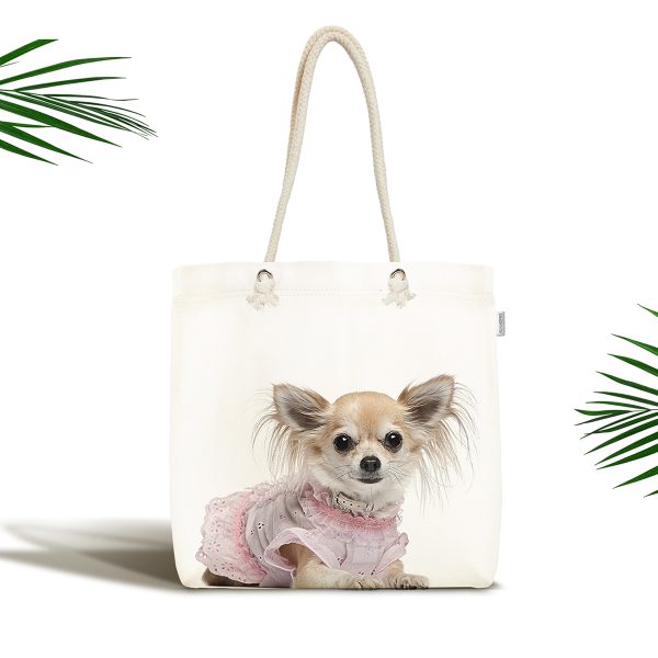 Sevimli Köpek Desenli Dijital Baskılı Kumaş Plaj Çantası