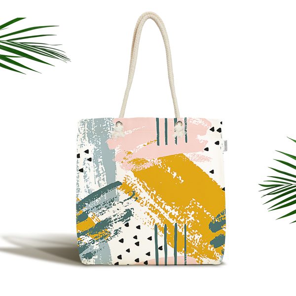 Yağlı Boya Soyut Çizimli Özel Tasarım Kumaş Plaj Çantası