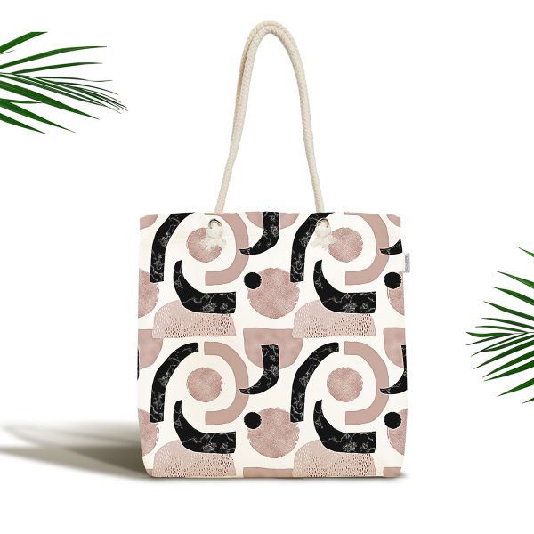 Mermer Desen Temalı Geometrik Özel Tasarım Kumaş Plaj Çantası
