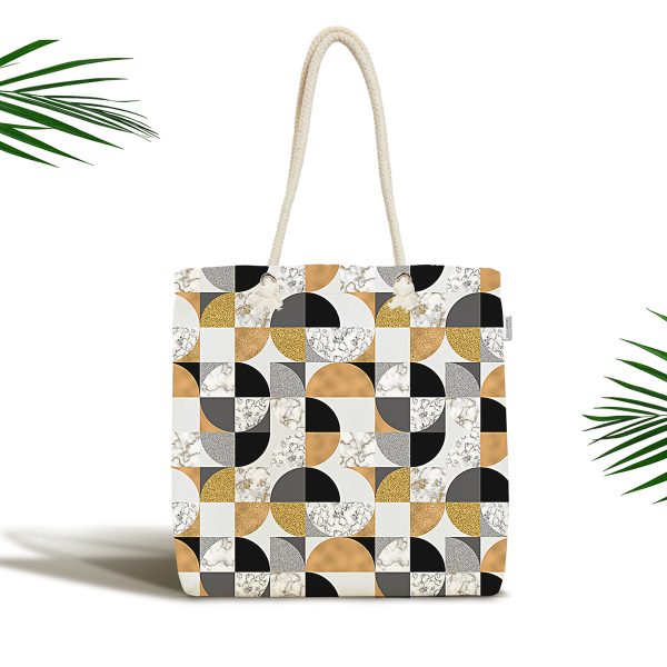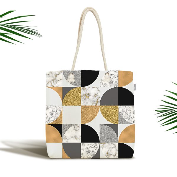 Geometrik Mermer Desenli Altın Motifli Özel Tasarım Kumaş Plaj Çantası