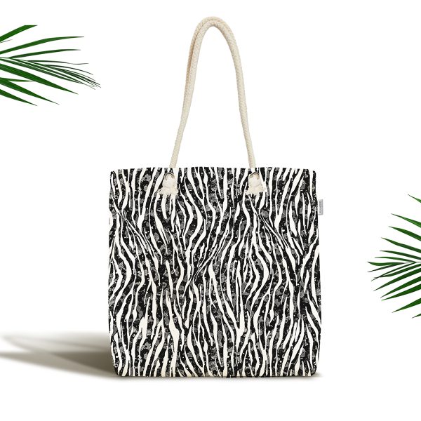 Zebra Desenli Özel Tasarım Kumaş Plaj Çantası