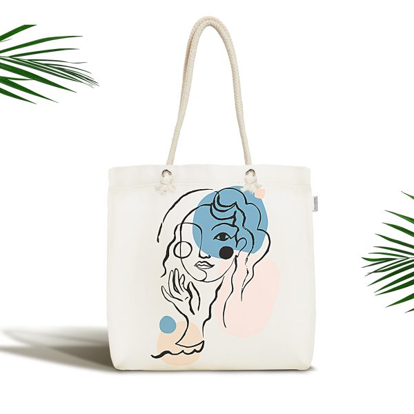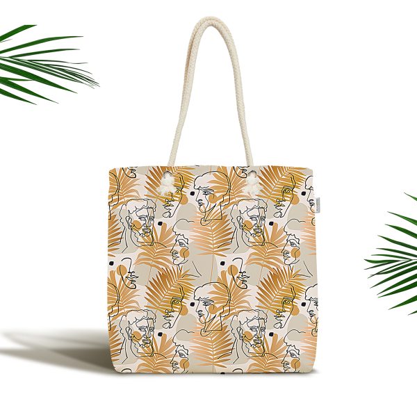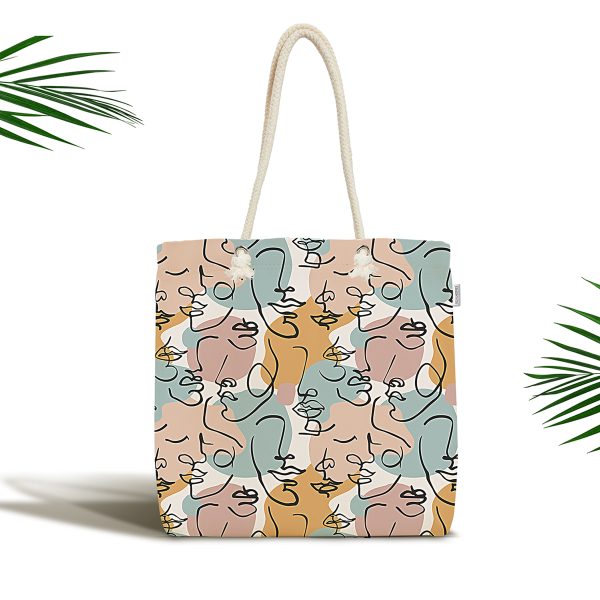 Portre Dijital Baskılı Dekoratif Özel Tasarım Kumaş Plaj Çantası