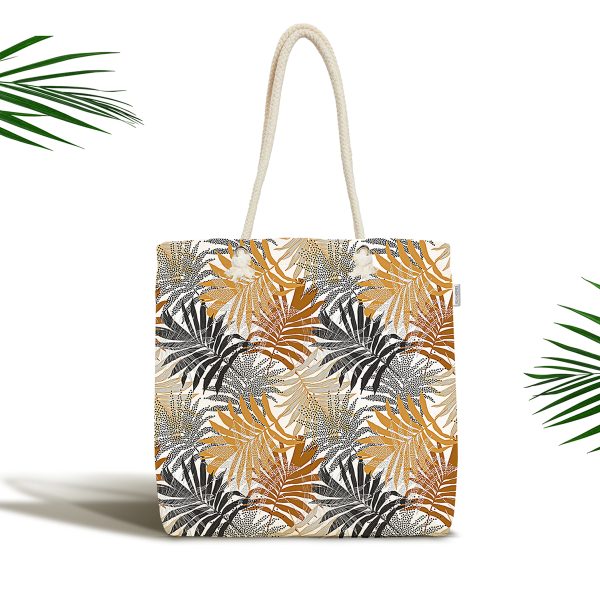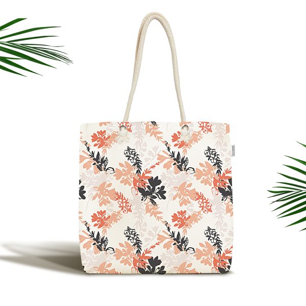 Turuncu Siyah Renkli Yaprak Dijital Baskılı Özel Tasarım Kumaş Plaj Çantası