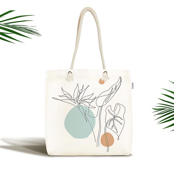 Botanik Portre Basklı Kumaş Plaj Çantası