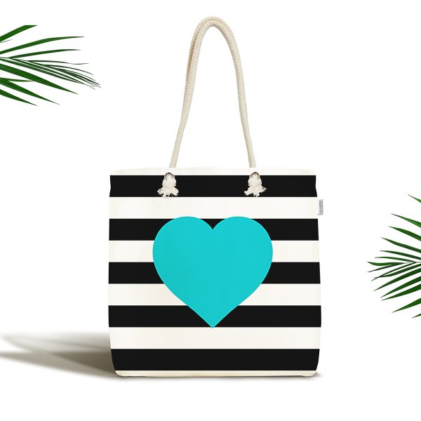 Modern Kalp Desenli Dijital Baskılı Kumaş Plaj Çantası