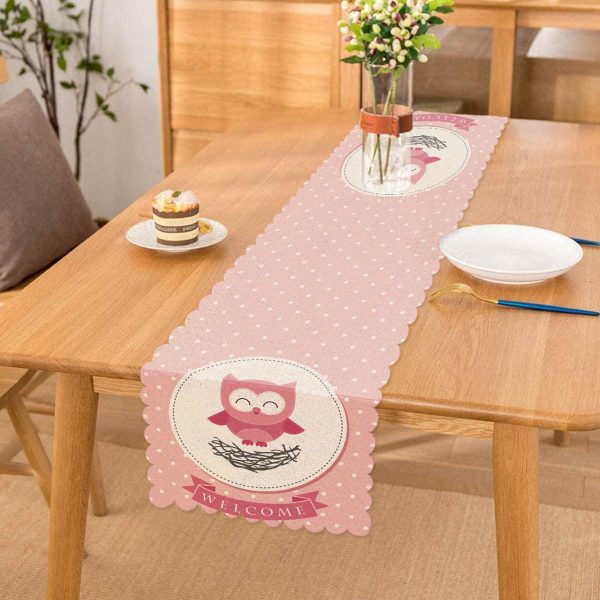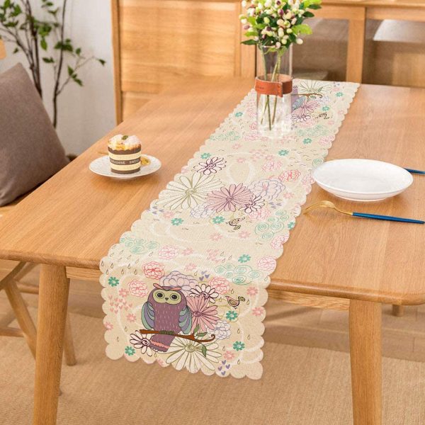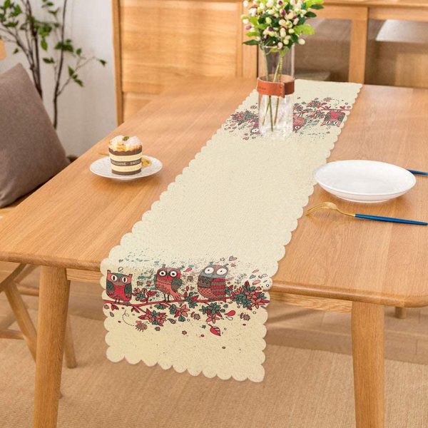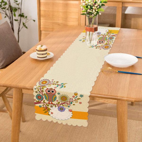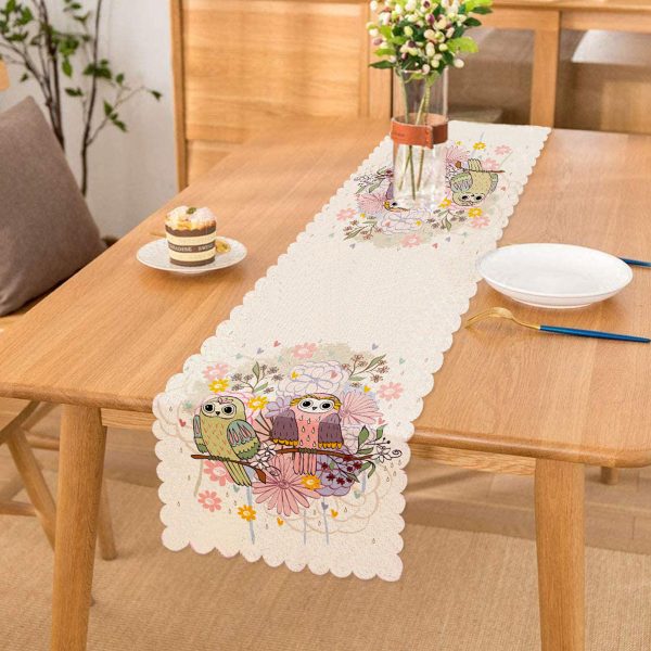 Baykuş Desenli Dijital Baskılı Dekoratif Runner