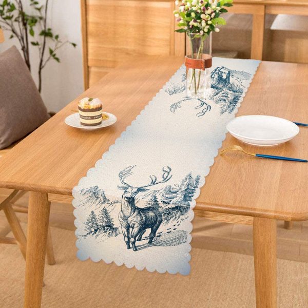 Kış Manzarası Otantik Temalı Dijital Baskılı Dekoratif Runner