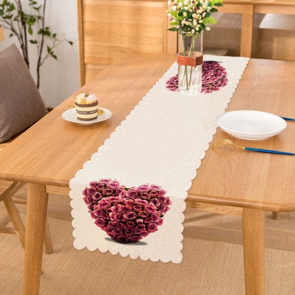 Güllü Kalp Dijital Baskılı Dekoratif Runner