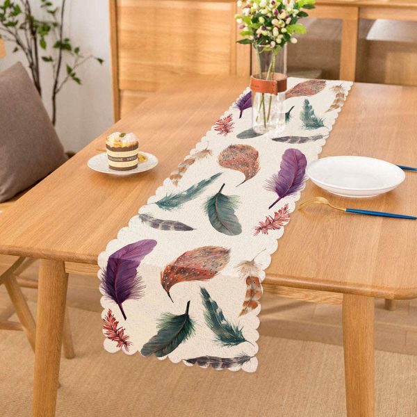 Kuş Tüyü Resimli Dijital Baskılı Dekoratif Runner