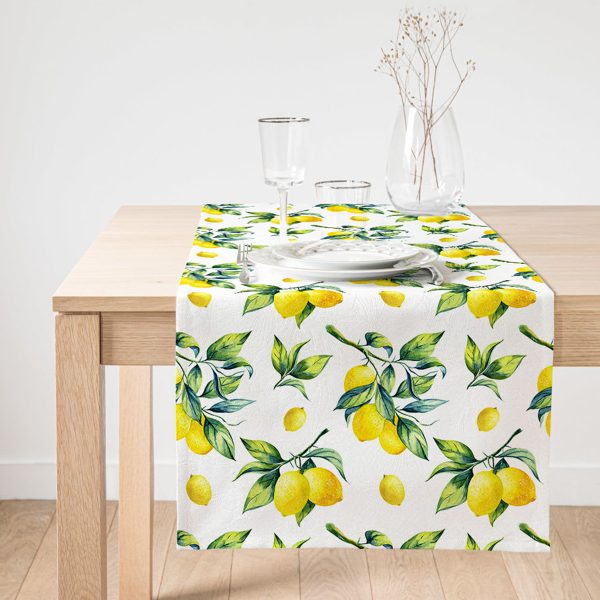 Beyaz Zeminde Limonlar Desenli Dijital Baskılı Leke Tutmaz Masa Örtüsü