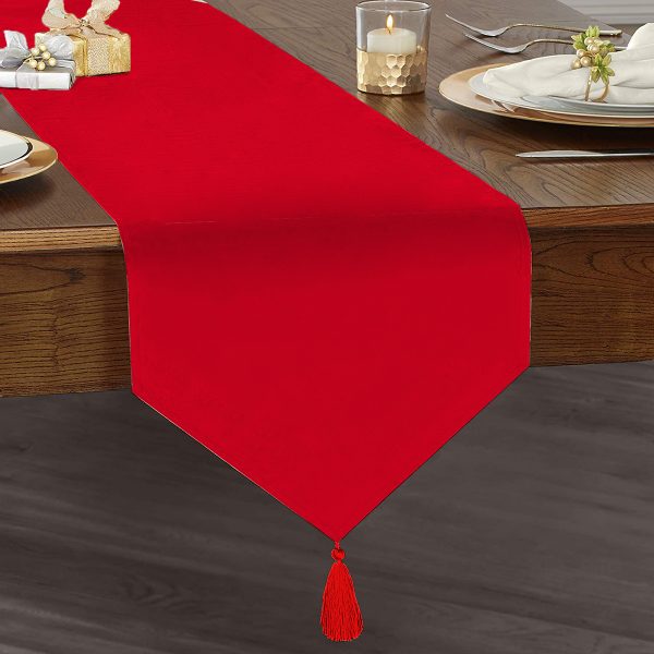 Realhomes Kırmızı Renkli Dijital Baskılı Dekoratif Özel Tasarım Püsküllü Şönil Üçgen Runner