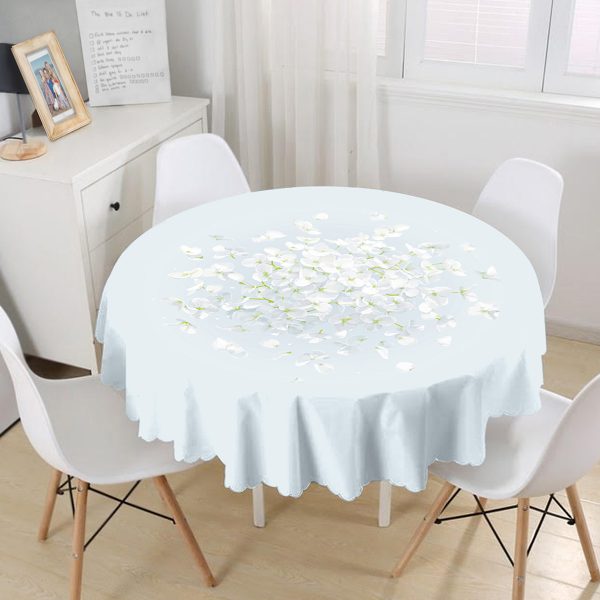 Rengarenk Zeminli Beyaz Ortanca Çiçek Desenli Dijital Baskılı Modern Yuvarlak Masa Örtüsü – Çap 140cm