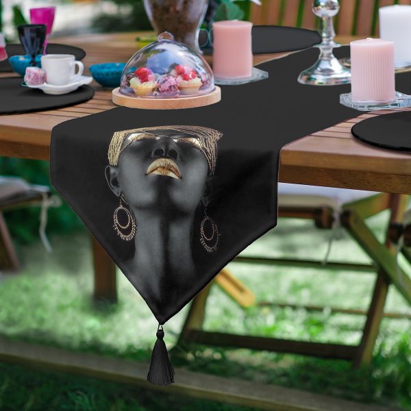 Realhomes Siyahi Kadın Özel Tasarımlı Modern Dekoratif Özel Tasarım Püsküllü Şönil Üçgen Runner