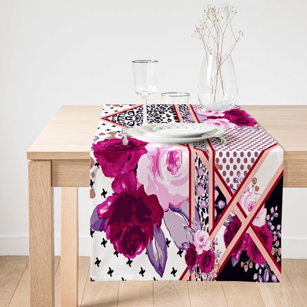 Realhomes Pembe Özel Tasarım Dijital Baskılı Modern Süet Runner
