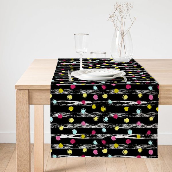 Realhomes Siyah Zemin Üzerinde Renkli Puantiyeli Desenli Dijital Baskılı Özel Tasarım Süet Runner