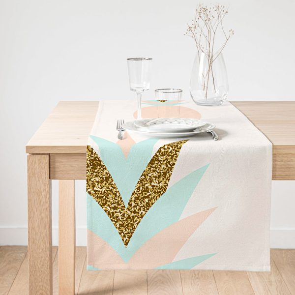 Realhomes Pastel Zemin Üzerinde Gold Detaylı Yaprak Desenli Dijital Baskılı Özel Tasarım Süet Runner