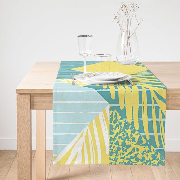 Realhomes Pastel Zemin Üzerinde Yaprak Desenli Dijital Baskılı Özel Tasarım Süet Runner