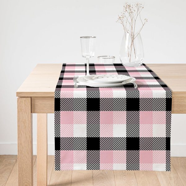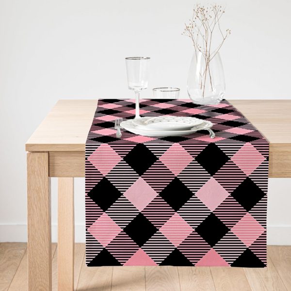 Realhomes Renkli Pastel Zemin Üzerinde Siyah Ekose Desenli Dijital Baskılı Özel Tasarım Süet Runner