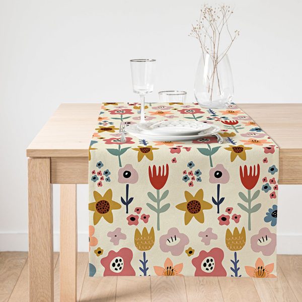 Realhomes Pastel Zemin Üzerinde Çiçek Desenli Dijital Baskılı Özel Tasarım Süet Runner