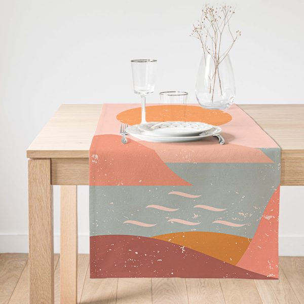 Realhomes Pastel Zemin Üzerinde Güneş Desenli Dijital Baskılı Özel Tasarım Süet Runner